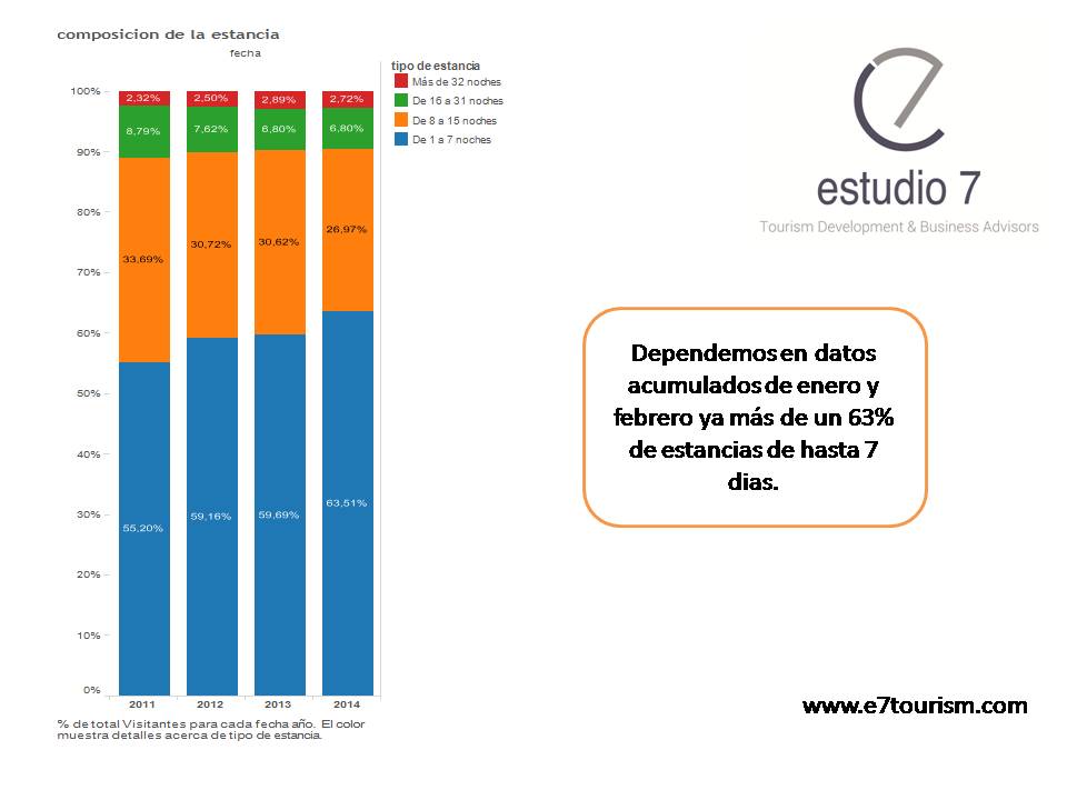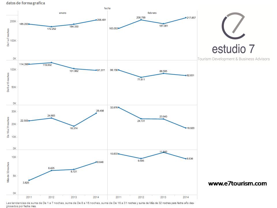 Surprisingly the data segment 8-15 nights . It is the worst of the series of the past four years and a trend that seems an indisputable fact for the destination. Probably this decrease in this segment explain why diminish overnight stays in apartments, it was said in a previous post.